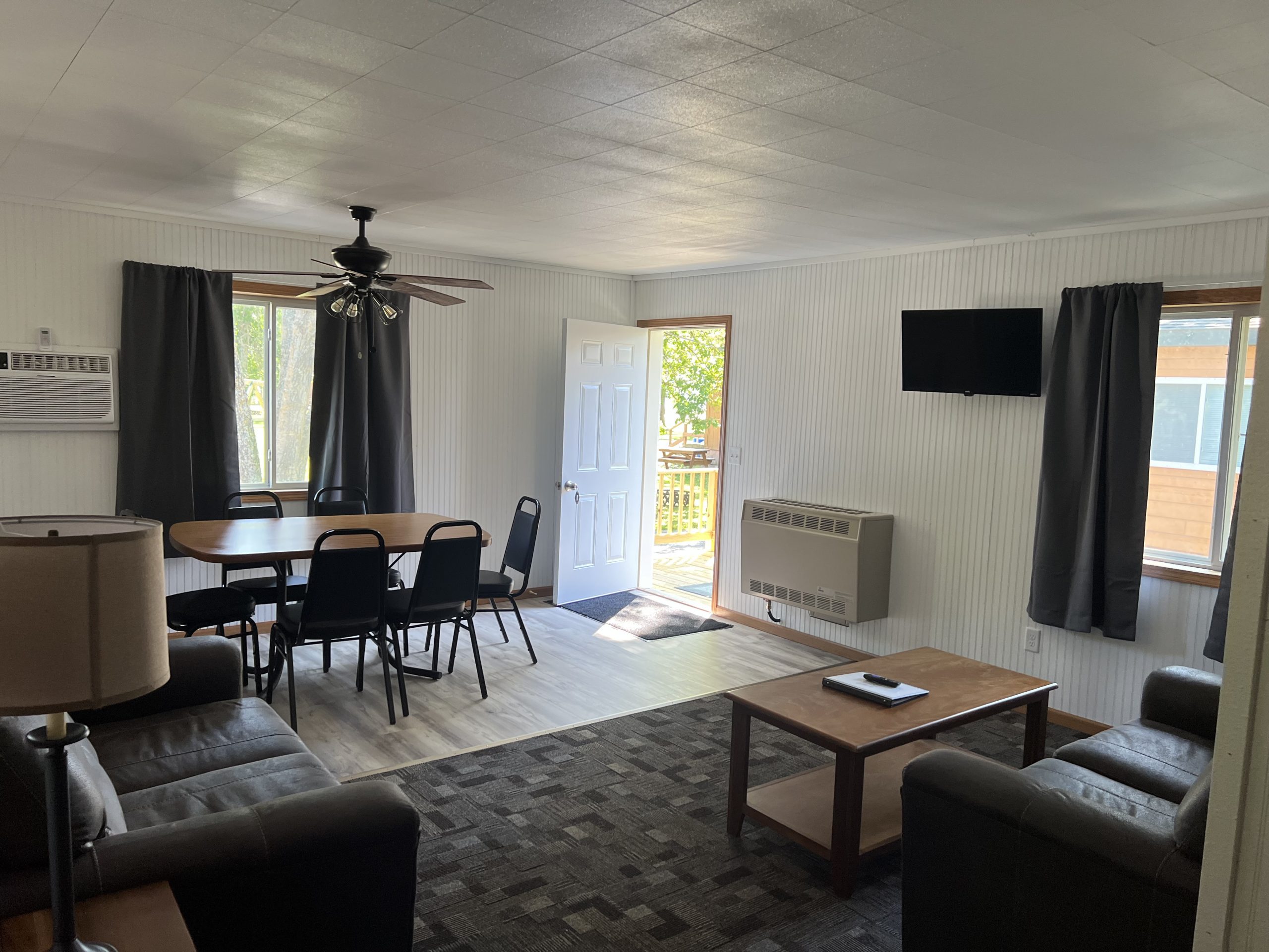 In the main lodge there are 14 modern rooms, a large lobby with a fireplace, dining room and 2 full service bars. Musical entertainment is featured most weekends for your enjoyment (Please check our events page for more information).